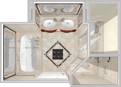 Spiegel über dem Waschtisch und über der Wanne beheizt.