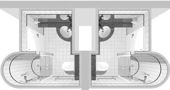 Komplettbad DR 2, Badgröße 222 x 222 cm